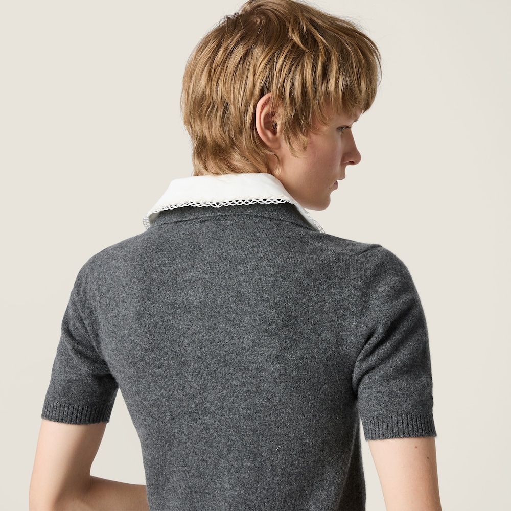 The essential cashmere polo takes on a versatile identity, defined by a distinctive detachable poplin collar with elegant, runway-inspired embroidery, adding character to everyday looks and refined layered styling.
