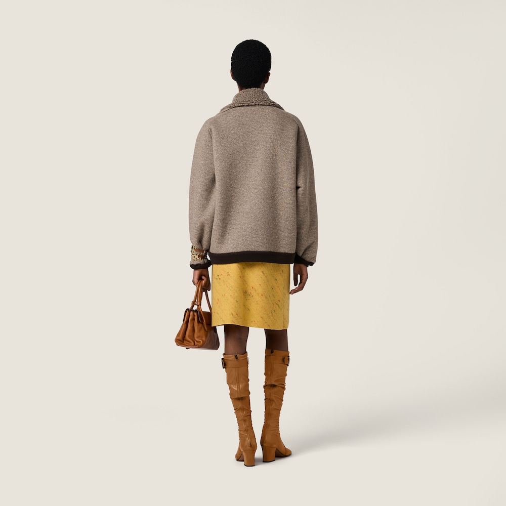 Soft fleece, a new staple of the Miu Miu wardrobe, gives this blouson jacket a relaxed attitude that reinterprets the classics from an experimental perspective, blending masculine and feminine elements.
