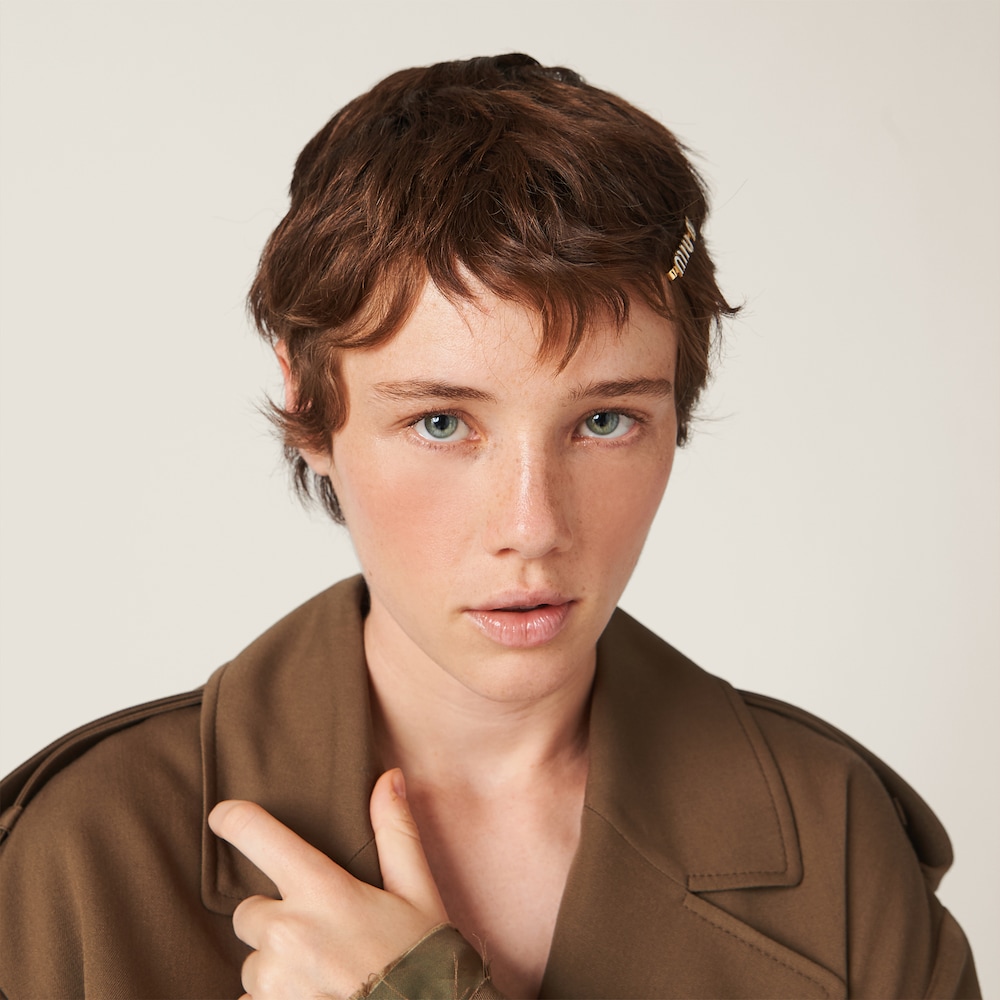 The visible Miu Miu logo gives this clip iconic and immediately recognizable style, becoming the emblem of a detail that makes all the difference.