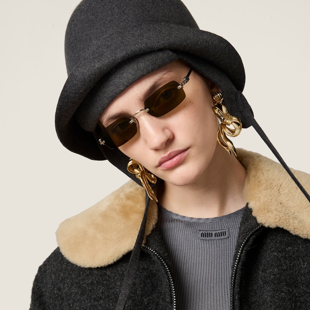 Miu Miu sunglasses with a sophisticated allure. The ultra-light metal frame features free-form rectangular lenses enriched by a playful color palette. The vertical Miu Miu logo adorns the ultra-thin temples