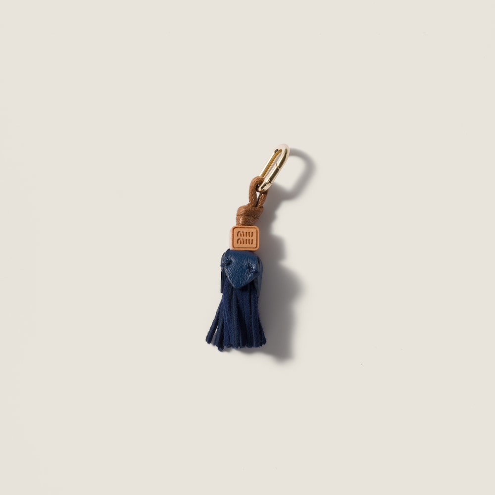 Miu Miu's bold, unique character comes to life in this soft leather micro trick with wooden logo that enriches the silhouette of sneakers and bags, creating new style combinations.