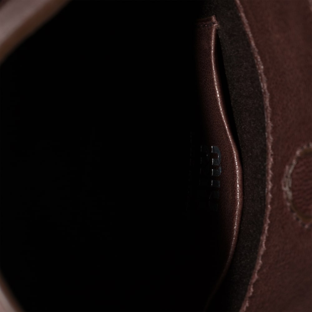 Slim proportions and a minimalist design inspire this pouch with functional shoulder strap, designed for practical, everyday use. The aged look of the nappa leather interprets Miu Miu's vintage experimentation.