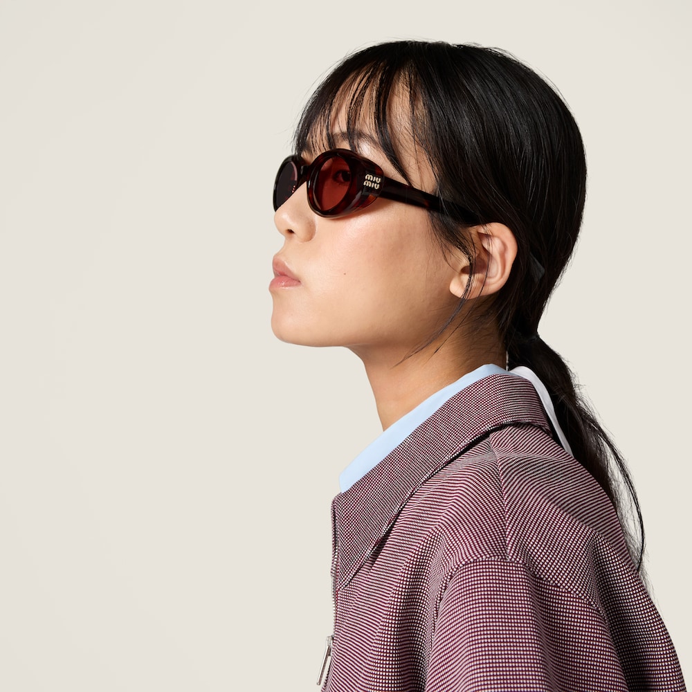 Rêverie sunglasses reinterpret the enveloping, feminine design in a version with more delicate volumes. The exclusive side spoiler made with multiple acetate layers highlights the excellent artisan craftsmanship. The frame is embellished with the Miu Miu logo.