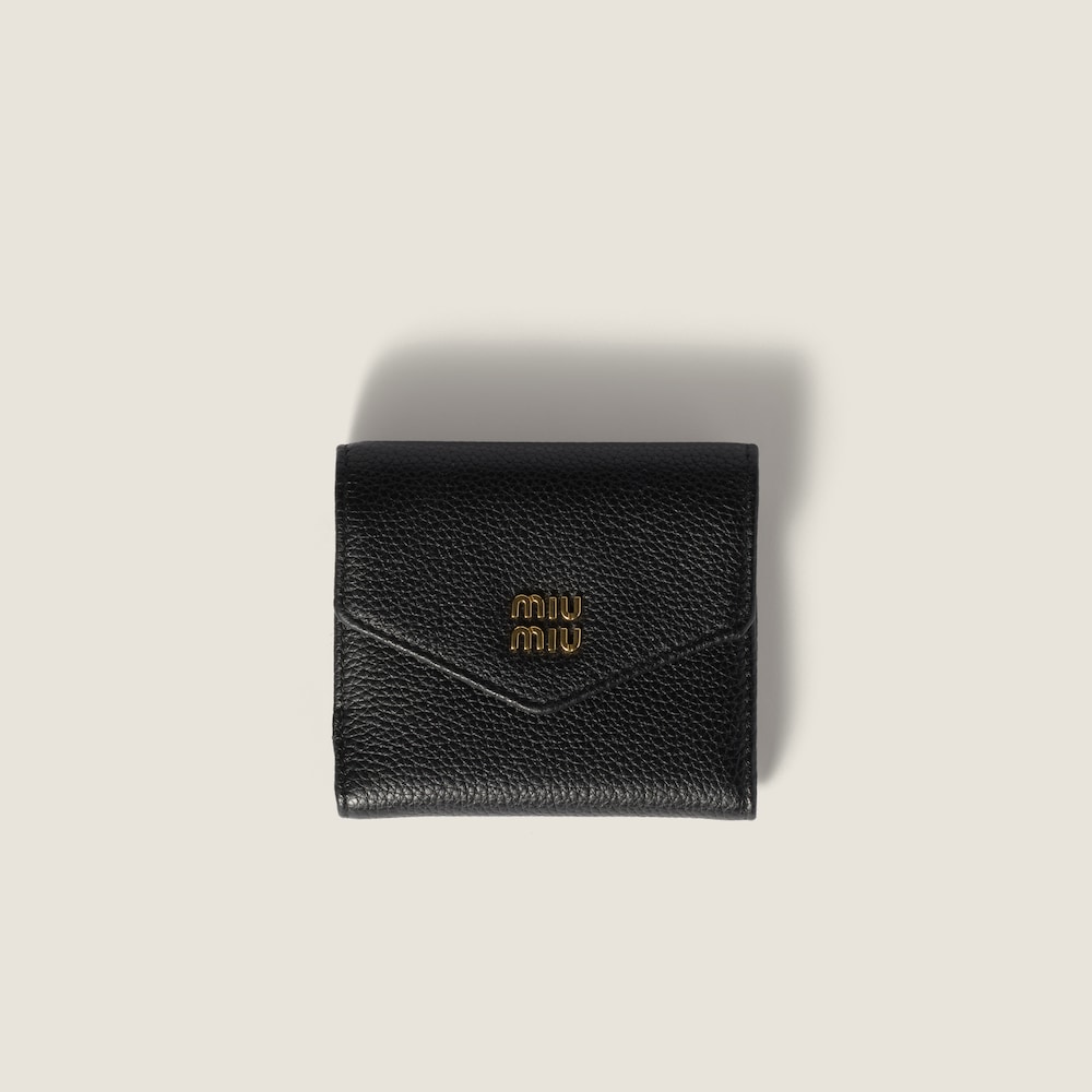 This wallet with a sleek shape and compact size stands out for the fine nappa leather craftsmanship and the iconic embossed Miu Miu logo, expressing bold and functional elegance.