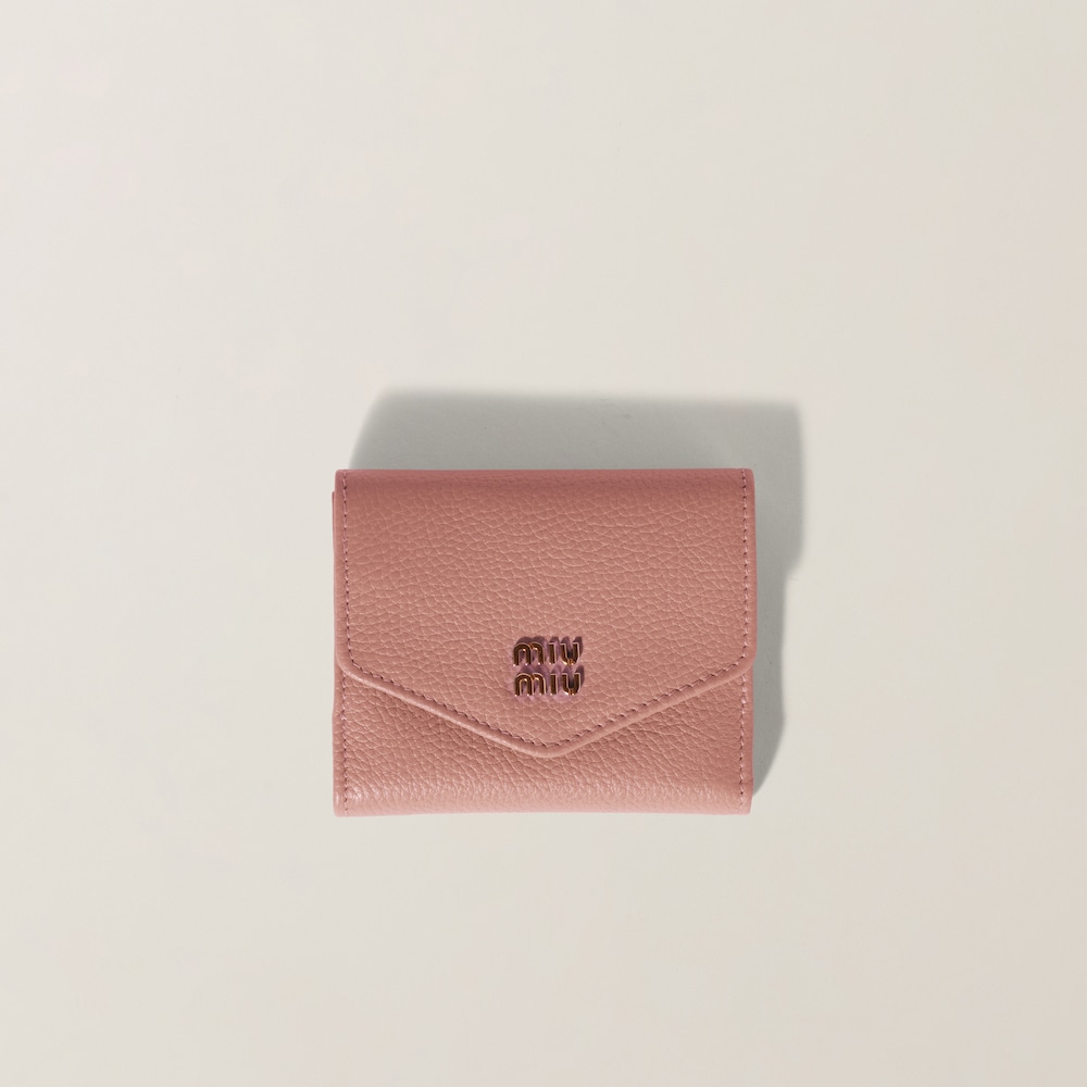 The quality of the leather and the iconic touch of the Miu Miu logo enhance the sleek lines of this new small leather wallet. Several internal compartments, card slots, and compact lines complete the design with functional details.