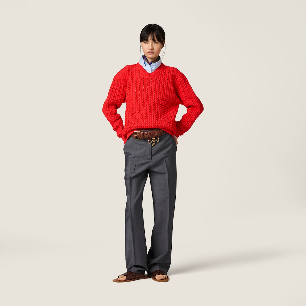 • Miu Miu Technical yarn V-neck sweater Red