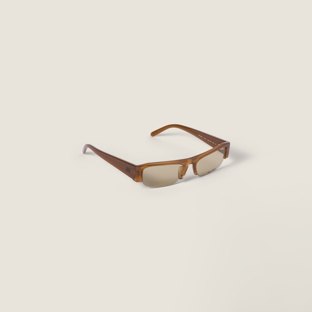 The Vedette sunglasses, unveiled at the FW25 show, draw inspiration from the early 2000s and combine a narrow rectangular frame with tall temples. The lenses, marked with the Miu Miu logo, add a bold and glamorous touch that invites instant wear.