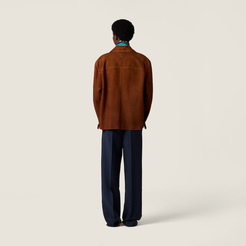 Reinterpreting retro menswear, this suede jacket blends a velvety texture and subtle nuances in color enhanced by a waxing technique applied by hand that accentuates its depth and artisan character.