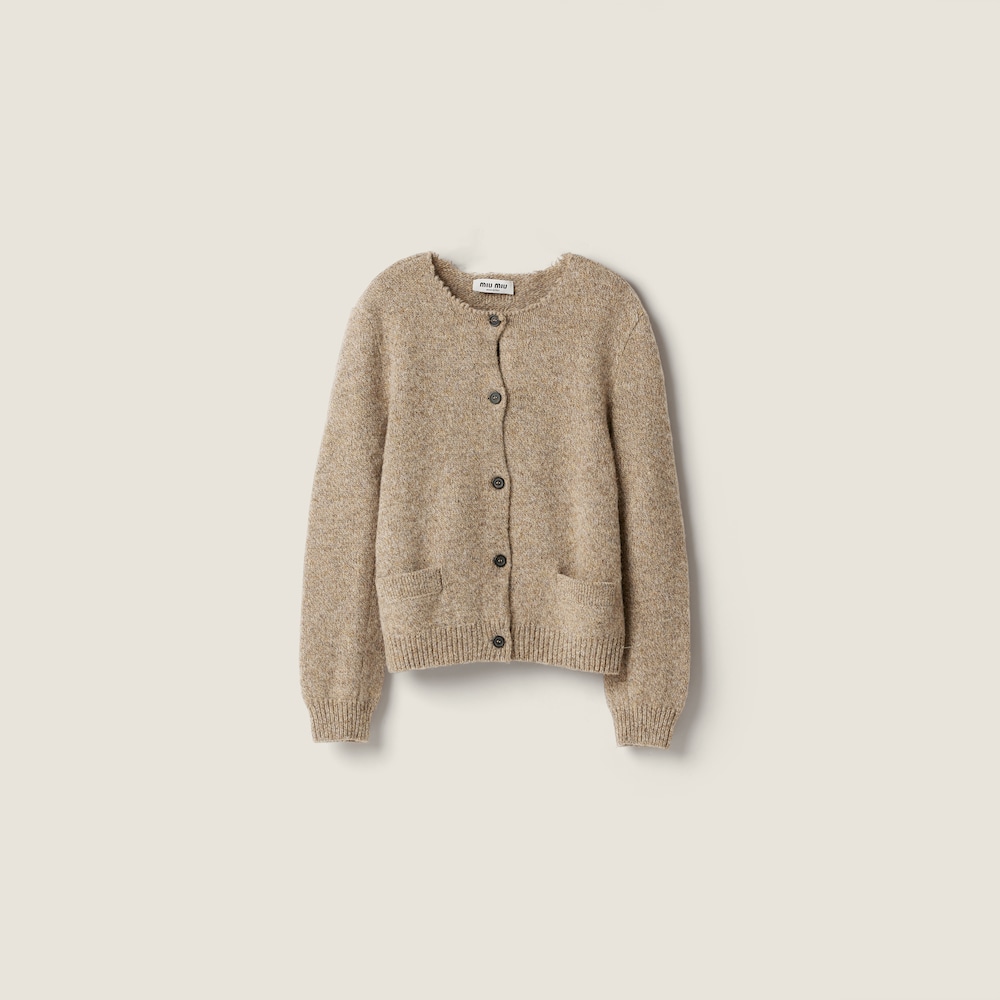 A sensual study of shapes comes to life in the lines of this soft wool cardigan that adapts to the body's curves, revealing the bold character of layering and femininity with refined, modern contrasts.